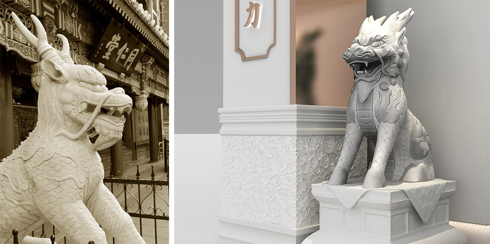 麒麟獻瑞石雕佇立兩側,既是仁慈和祥的象征,又是同仁堂門店之前瑞獸,可以讓消費者很輕松地與母品牌鏈接起來。
