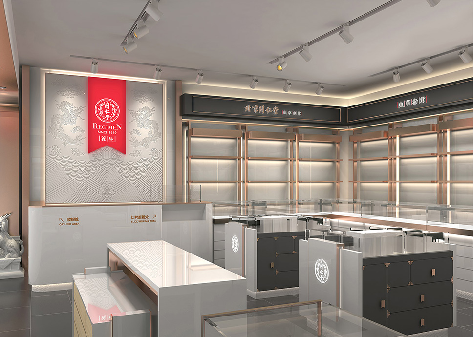 隨著更多年輕人對養生的意識越來越強,必須要適應他們的消費習慣,而門店終端形象直接就影響著商品的成交率。于是為了迎合當下時代的發展,提升年輕市場的占比,我們在升級了養生專柜后,對同仁堂參茸蟲草專賣店也進行了重新開發升級。