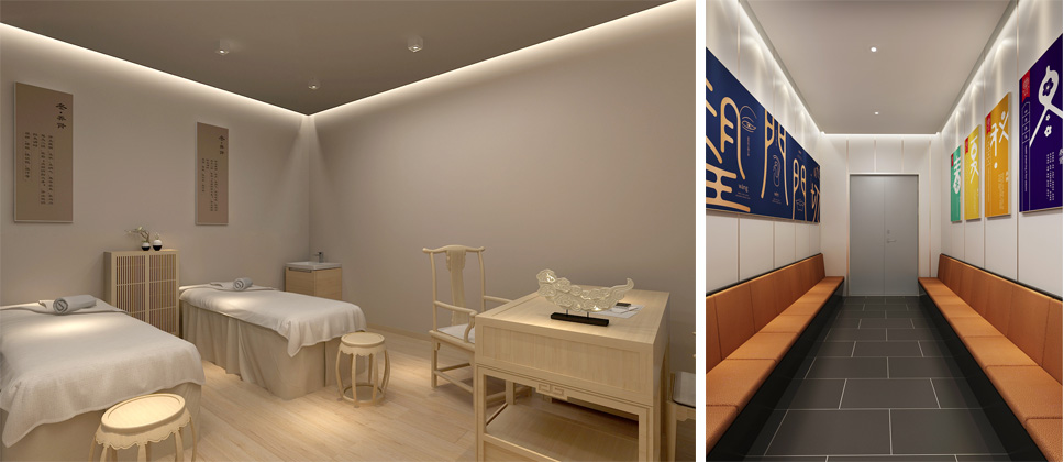 內部設計相比外部設計而言,涉及的設計元素更多,難度也更大。涉及的元素包括通道、柜臺、色彩、燈光、音樂、商品陳列布局等。我們依據同仁堂的文化屬性,強化空間布局及持續改善功能,讓顧客停下腳步,體驗、了解商品,實現產品動銷,門店增量。